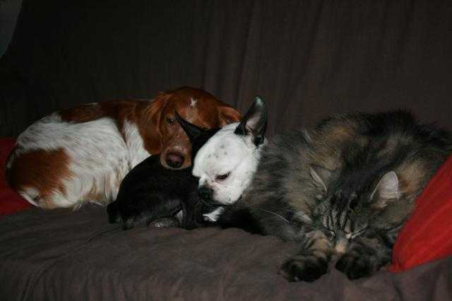 Terrier de Boston et Epagneul Breton et Chat