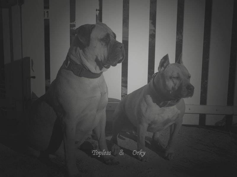 Topless (bullmastiff) et Orky(Am'staff)