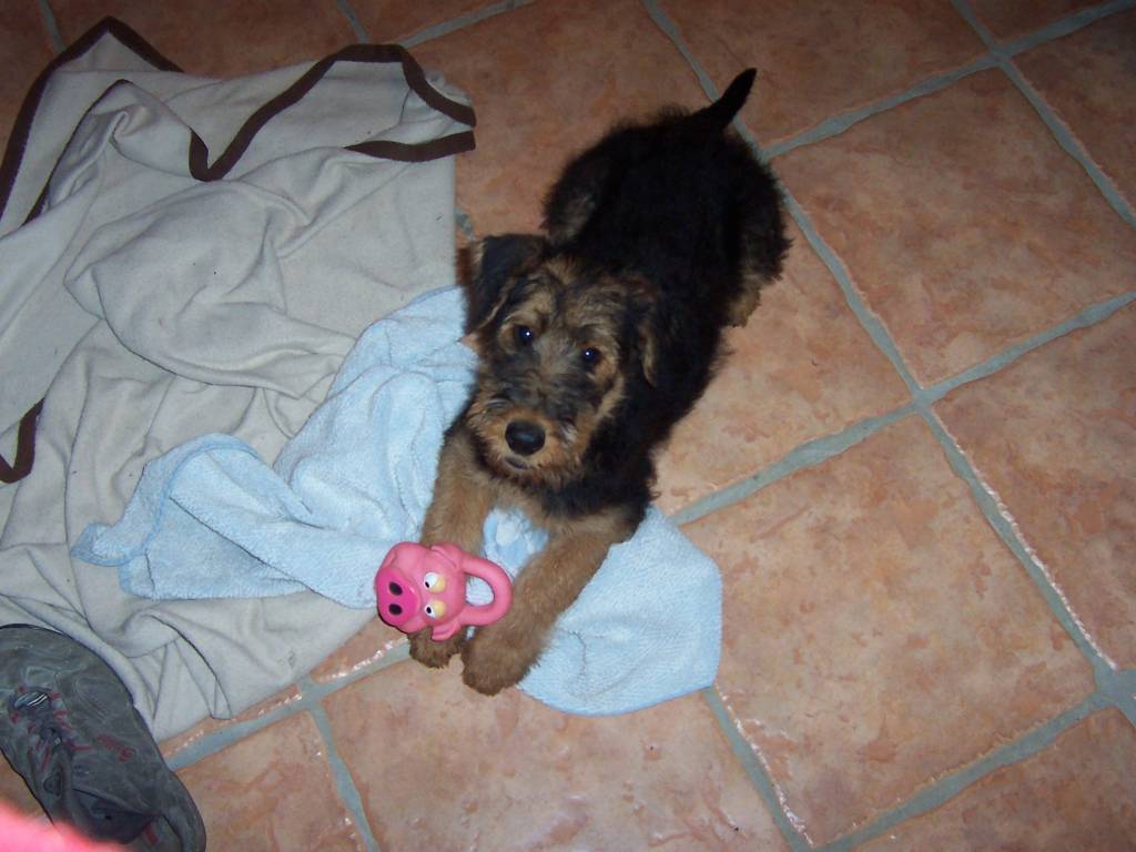 Mon bébé airdale terrier qui a peur de l'eau car il a u un accident petit