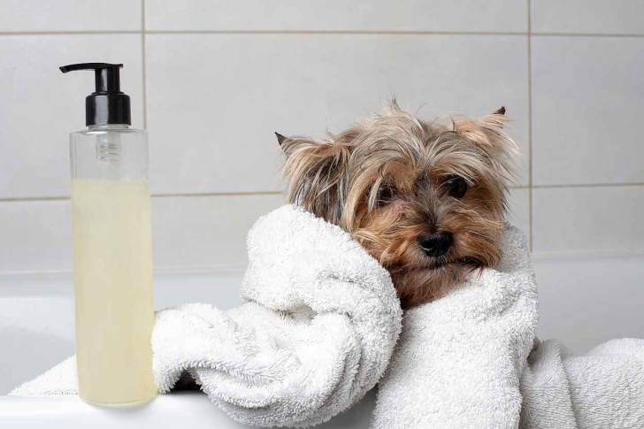 Il convient aussi de souligner qu’il existe des shampoings conçus pour la gent canine qui sont hypoallergéniques ou apaisants, et de ce fait particulièrement recommandés pour un chien à la peau sensible ou ayant des démangeaisons. Cela dit, s’il présente des problèmes de peau (sécheresse, excès de sébum, maladie cutanée, etc.), le mieux est toujours de demander conseil à un vétérinaire afin de savoir ce qui est le plus adapté.
