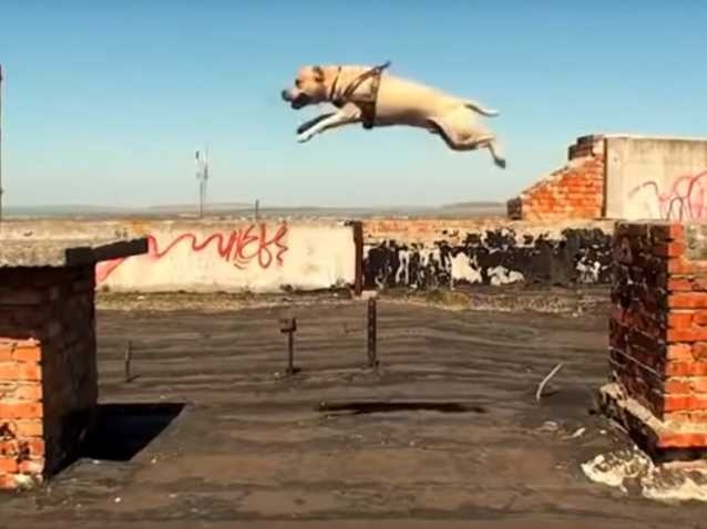 Chien puissant, énergique et rapide, l'American Staffordshire Terrier démontre ici toute ses capacités physiques. Course éclair, franchissement d'obstacles de plusieurs mètres, sauts immenses, escalade, mordant, précision, le tout avec un plaisir évident, ce chien bien entraîné atteint des sommets.