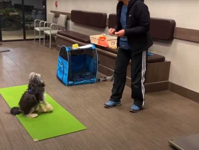 Dans une salle, voici un Bichon Chien Lion qui est en train apprendre des tours avec sa maîtresse. Le Bichon Petit Lion enchaîne avec succès la série d'exercices. Il est très obéissant et attentif à chaque instruction. Sa propriétaire peut être fière de son compagnon si talentueux et intelligent. Félicitations à ce Löwchen !