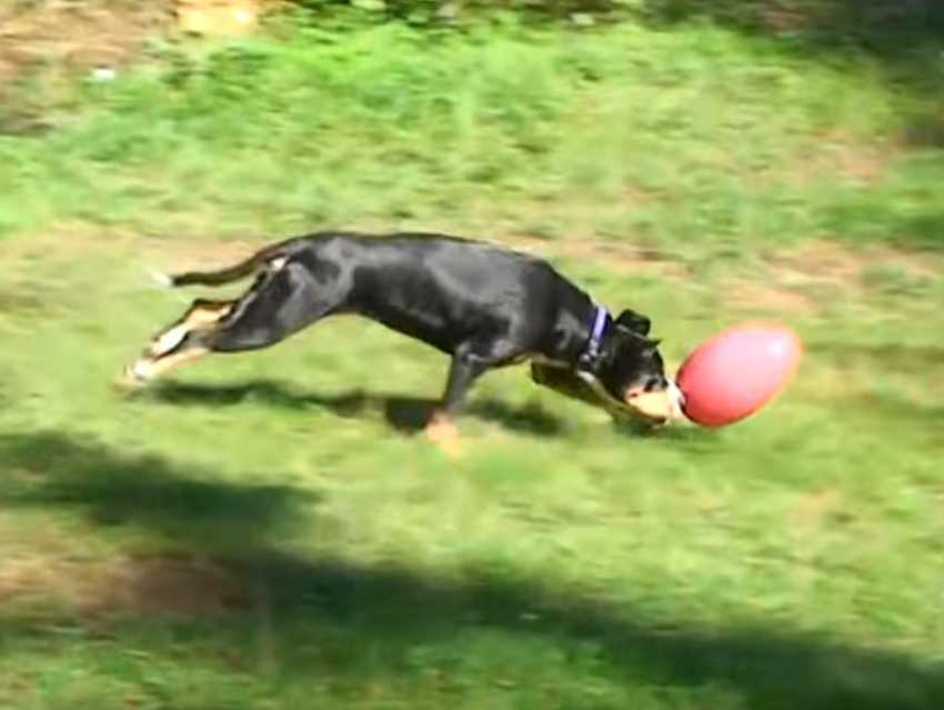 Un Bouvier de l'Entlebuch joue au football avec son joli ballon. Durant toute la vidéo, le chien va être obsédé par le ballon, tentant de le rattraper ou le poussant aussi loin que possible avec son museau, jusqu'à finir par s'en désintéresser. Un excellent moyen d'occuper son chien !