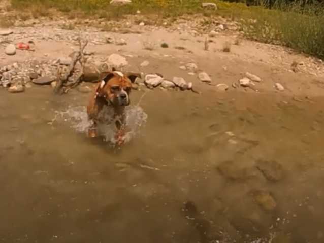 De constitution robuste, le Bulldog Continental peut se promener sur des terrains légèrement accidentés ou bien encore aller dans l'eau. Le chien dans cette vidéo en est un bon exemple : il court, intrépide, dans l'eau claire d'un cours d'eau, pour aller y récupérer son jouet qui flotte au gré du courant.