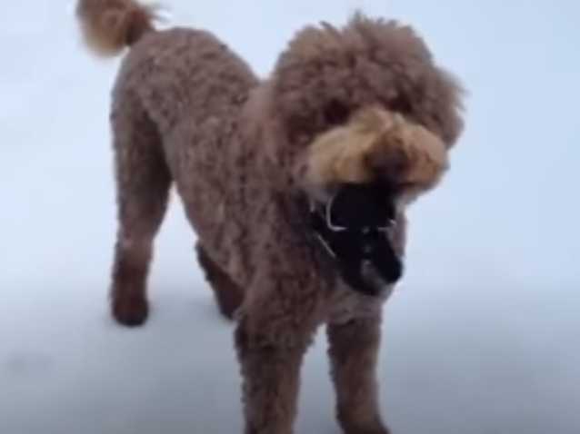Ce caniche a décidé de jouer dans la neige avec le gant de sa maîtresse et hésite à le lui rendre. Cependant celui-ci finit par lui échapper et est récupéré par la femme. S'ensuit un face à face au cours duquel le chien très attentif hoche la tête comiquement à chaque phrase.