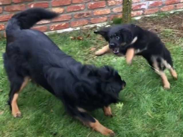 Cette vidéo montre bien l'importance du jeu chez le chien, en particulier chez le jeune. Au-delà du plaisir qu'il peut y prendre, le jeu sert pour cet Hovawart à exprimer divers comportements comme attaquer, poursuivre ou surprendre son partenaire. Il permet d'améliorer la croissance du corps ainsi que sa maîtrise en travaillant son équilibre et sa précision et de développer pleinement son mental en apprenant à se contrôler.
