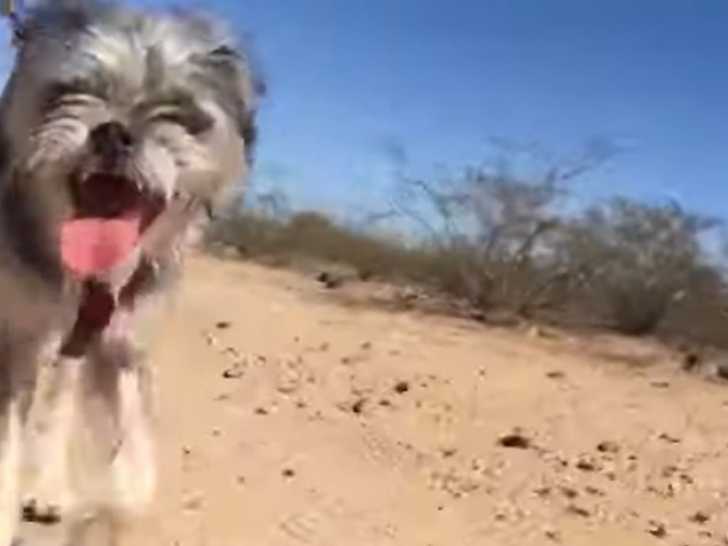 Ce propriétaire a emmené son Malti-Pug en randonnée dans le désert. Attaché à un harnais, le petit compagnon suit vaillamment le rythme de son maître. Bien que la chaleur semble le fatiguer, comme en témoigne sa langue tirée, il reste curieux et explore chaque recoin de leur chemin en reniflant et en observant attentivement son environnement.