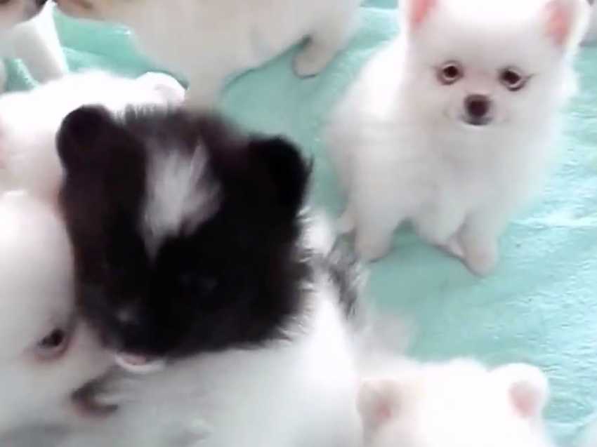 Dans cette vidéo, le chiot blanc et noir se différencie de ses frères et sœurs avec son pelage. En effet, l'Esquimau Américain est surtout connu pour ses poils blancs comme neige. D'ailleurs, son épais pelage lui permet d'affronter les hivers rigoureux. Pour bien entretenir sa robe, il est conseillé de brosser ses poils régulièrement.