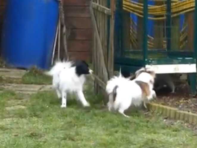 Cette fratrie de d’Epagneuls Nains Continental Phalène joue dans le jardin. Chiens dynamiques et joueurs, les voici en train de se pourchasser, bondissant et se défiant les uns les autres. Une vidéo attendrissante des ces adorables petits, qui respirent la joie de vivre et le bonheur de ce moment de jeu.