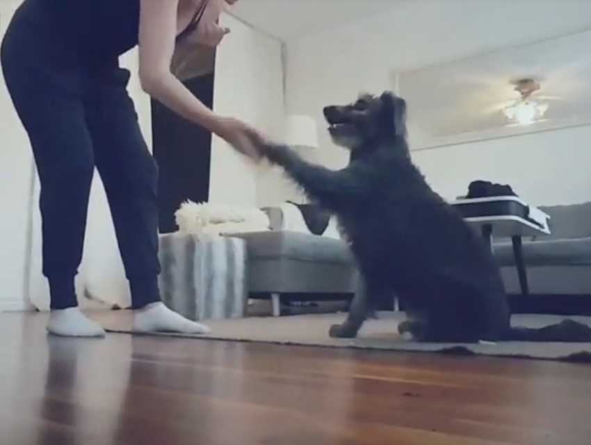 Slalomer entre les jambes de son maître, donner la patte droite puis la gauche, s'asseoir et se coucher rien sans utiliser la voix, voici une liste de plusieurs d'exercices à faire réaliser à son chien. Ils ont pour but principal de consolider la hiérarchisation des rapports. Ce Berger des Pyrénées à face rase a, malgré son jeune âge, beaucoup d'aisance à reconnaître les ordres et les exécuter, preuve d'un entraînement rigoureux mis en place par son maître.