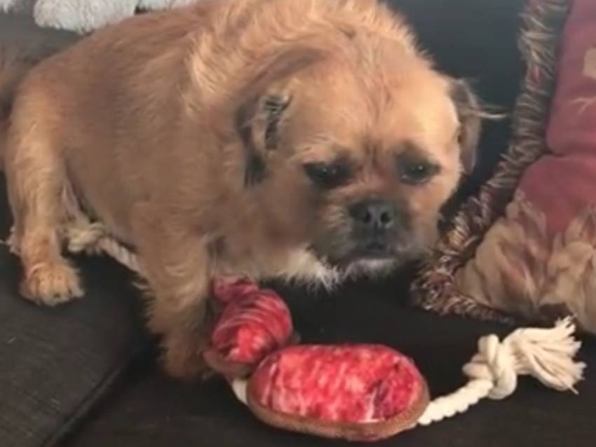 Tout comme les humains, les chiens savent exprimer de l'égoïsme, surtout lorsqu'il s'agit de leurs jouets. Ce Griffon Belge n'a absolument pas l'intention de partager avec son congénère et, bien que sa maîtresse lui demande d’être plus gentil, il a décidé de jouer seul. C’est un têtu, mais un têtu adorable !