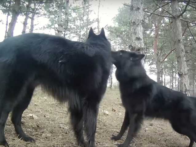 Bourne et Cheri, deux Groenendaels, retrouvent les joies des sorties en forêt à l'arrivée du printemps. Les deux chiens noirs jouent ensemble dans ce grand espace, dépensant beaucoup d'énergie à se taquiner. Le Groenendael a en effet besoin de beaucoup d'activité, ce qui manquait peut-être à ces deux chiens restés confinés pendant l'hiver.