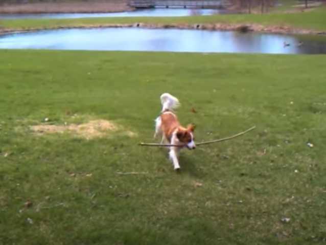 Voici un Kooikerhondje qui a beaucoup d’énergie à revendre. Cette vidéo le montre au cours de diverses promenades et activités. Ainsi, il joue certains jours soit avec un frisbee dans un parc, soit avec un bâton que son maître lui lance.