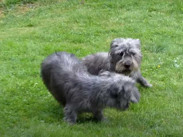 Voici deux Terriers Irlandais Glen of Imaal qui jouent à la lutte sur l'herbe verdoyante d'un jardin. Ils se disputent gentiment mais ne s’épargnent pas des coups de gueule et de pattes pour remporter la partie. Ce n'est toutefois qu'un jeu et ce match reste amical entre ces deux terriers.