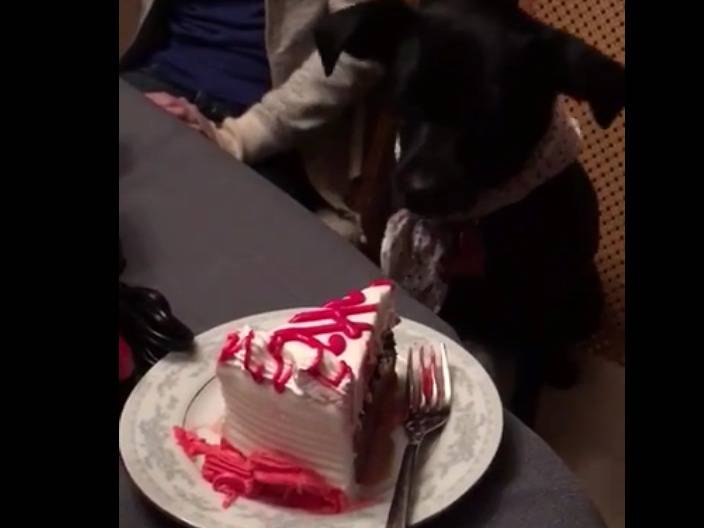 Une fête d'anniversaire en famille, cela inclut aussi les compagnons à quatre pattes. Et ce n'est pas ce petit chiot Patterdale Terrier qui dira le contraire, à la vue de cette part de gâteau à la crème qui lui fait très envie. Mais comme il est bien éduqué, il devra attendre qu'on lui donne la permission pour y goûter.