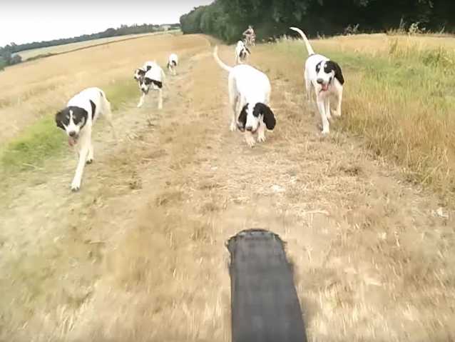 Il n'est pas possible de chasser en toute circonstance, mais la meute ne peut se permettre de rester inactive. Alors ces Ariégeois maintiennent leur santé et leur endurance en courant après le vélo de leur maître. Ils adorent visiblement ça, il suffit de voir leur impatience avant que la porte ne s'ouvre pour le départ.