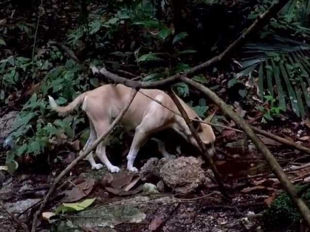 Cette vidéo montre ce chien en promenade dans son élément naturel : les forêts luxuriantes de Malaisie.