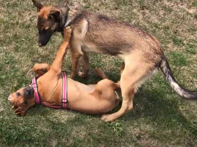 Etant donné qu’ils sont tous les deux des chiens sportifs, il est difficile de savoir lequel va remporter cette partie amicale de lutte.