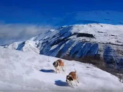 Le Saint-Bernard est un chien reconnu pour aimer la montagne. Dans cette vidéo, un groupe de Saint-Bernards sont en pleine nature. Tous ensemble, ils s'amusent et jouent dans la neige comme des petits fous ! Ils prennent plaisir à jouer et à s'éclater ! Se rouler et courir dans la neige ? Ils adorent ça !