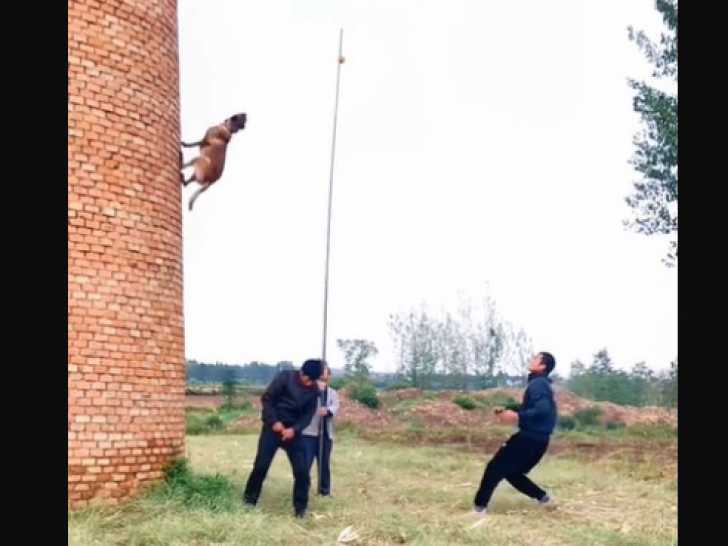 Celui que l'on voit dans cette vidéo commence par s'élancer : il prend appui sur le dos d'un homme, puis se propulse contre le mur avant de se retourner et de sauter pour attraper l'appât en hauteur. Heureusement qu'une troisième personne est là pour le rattraper à l'atterrissage !