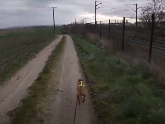 Voici deux Staffordshires Bull Terrier qui ont décidément beaucoup d’endurance lors de cet entraînement de Cani-VTT. Tout en sprintant sur le sentier, bien accroché au VTT de leur maître à l’aide d’une longue longe reliée à la laisse, ce sont les Staffordshires Bull Terrier qui mènent la cadence.