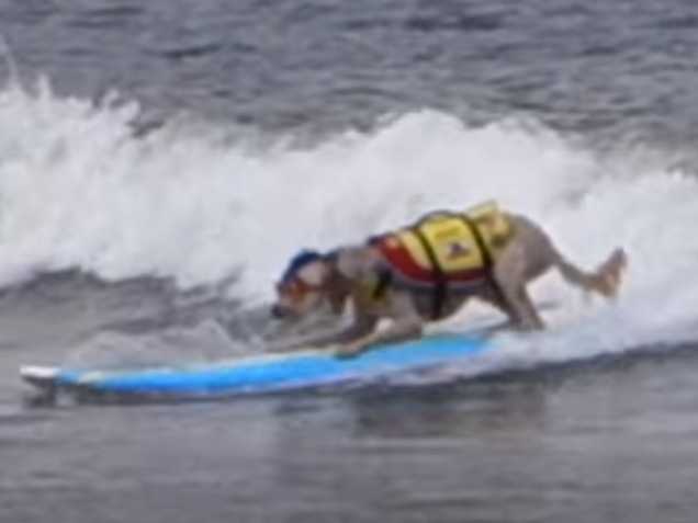 À Pacifica, en Californie, comme chaque année à cette époque, des chiens de toutes sortes se sont affrontés sur la plage de Linda Mar, à l’occasion du championnat international de surf pour chiens. Aidés de leur maître, il s’agissait pour eux de parcourir la plus longue distance sur l’engin diabolique. Un jury attentif surveillait les concurrents afin de les départager. Le surf, nouveau sport canin officiel ?