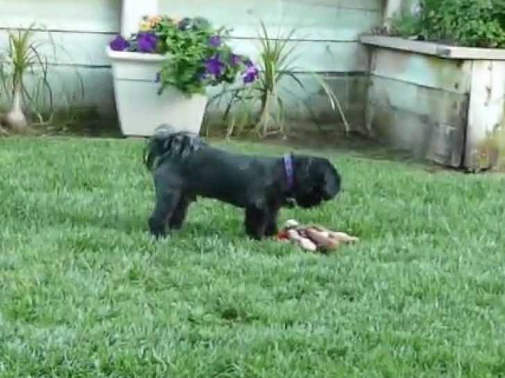 Cet Affen-Tzu a reçu un nouveau jouet : une peluche en forme de singe. Il l'emmène partout avec lui, l'attrapant entre ses dents avant de partir en courant dans le jardin. Sa joie est évidente à voir, il ne veut pas se passer de son jouet. Fruit du croisement entre le Shih-Tzu et l'Affenpinscher, l'Affen-Tzu est un compagnon joueur qui peut parfois se montrer un peu têtu.