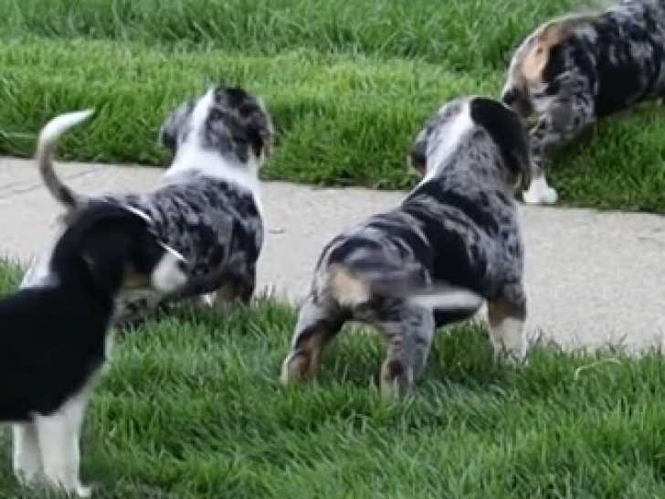 Ces adorables chiots Australian Sheagle sont le fruit du croisement entre un Beagle et un Berger Australien. Ils gambadent dans l'herbe et débordent de vitalité. Leur nature sociale en fait des compagnons parfaits pour toute la famille. Actuellement à la recherche d'un foyer aimant, ces petits chiots ne demandent qu'à partager leur amour et leur énergie.