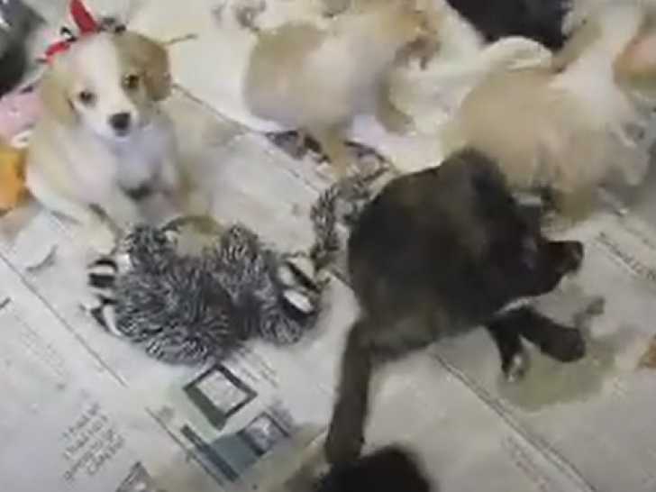 Ces adorables petits Chinese Boston-Tzu ont été recueillis par un refuge il y a une semaine. Depuis leur arrivée, ils vivent ensemble dans une petite cage, entourés de leurs jouets et de leurs gamelles. Bien qu'ils soient assez agités, ils attendent patiemment de trouver une famille qui les adoptera et leur offrira un foyer. Le Chinese Boston-Tzu est issu du croisement entre le Boston Terrier et le Shih Tzu.