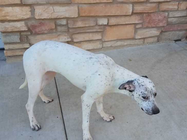Tudy est une Bodacion débordante d'énergie. Adorable et gentille, elle se promène dans un jardin. Actuellement hébergée dans un refuge, elle profite de la présence de la gérante pour recevoir quelques caresses et friandises, en attendant d'être adoptée. Le Bodacion est le résultat d'un croisement entre un Border Collie et un Dalmatien.