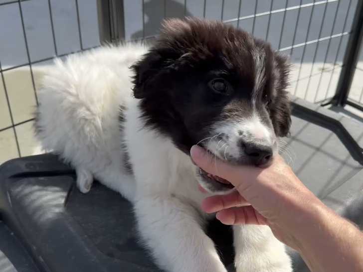 Ce Bordernese de neuf semaines vient d'être sauvé. Il est impatient d'être adopté par une famille qui est prête à lui donner toute l'affection qu'il demande. En effet, il est très gentil et très doux avec les humains comme avec les autres chiens. Le Bordernese est issu du croisement entre le Border Collie et le Bouvier Bernois.