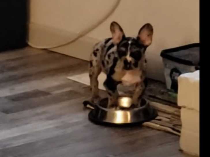 Ce French Bullhuahua a un comportement amusant qui fait rire ses maîtres. Il a décidé qu'il était temps pour lui de manger et pose ses deux pattes avant dans sa gamelle en les regardant. Comme cela ne fonctionne pas, il se met à gratter celle-ci pour attirer l'attention. Le French Bullhuahua est le fruit du croisement entre le Bouledogue Français et le Chihuahua.