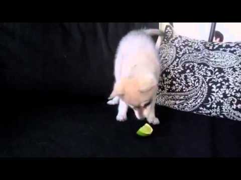 Quelle découverte acide. Dans cette vidéo la curiosité du chiot va provoquer une réaction amusante mêlant l'envie de lécher et la répulsion à cette saveur piquante. Le petit chien va t-il se découvrir une passion pour ce fruit acide mais très bénéfique, ou la citron va t-il devenir un de ses cauchemars ?