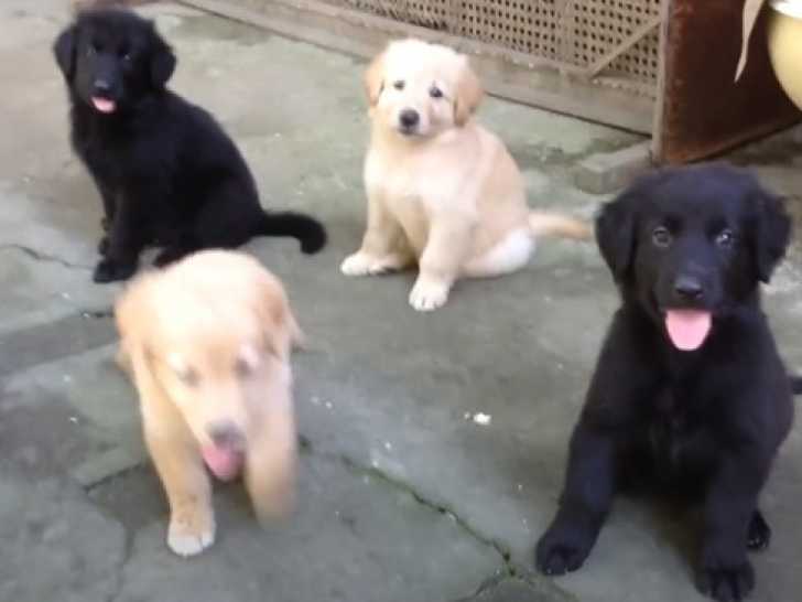 Ces petits Golden Shepherds sont à la fois adorables et bien éduqués. Lorsqu'ils entendent leur maître les appeler pour le repas, ils accourent joyeusement et s'assoient patiemment dans la cour. Ils suivent ensuite leur propriétaire au pied, prêts à partager tranquillement leur gamelle. Le Golden Shepherd est le résultat du croisement entre le Golden Retriever et le Berger Allemand.