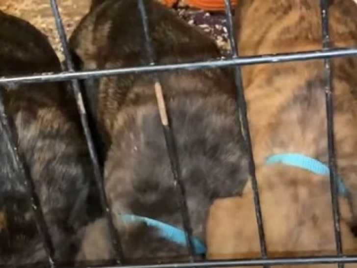 Cette portée de Rotticorso partage le même enclos. Lorsqu'il est temps de se nourrir, une grande gamelle est mise à leur disposition avec leurs croquettes, et tous mangent en même temps. Cette situation peut parfois créer des tensions entre les chiots, bien que chacun puisse finalement s'alimenter. Le Rotticorso est le résultat du croisement entre le Rottweiler et le Cane Corso.