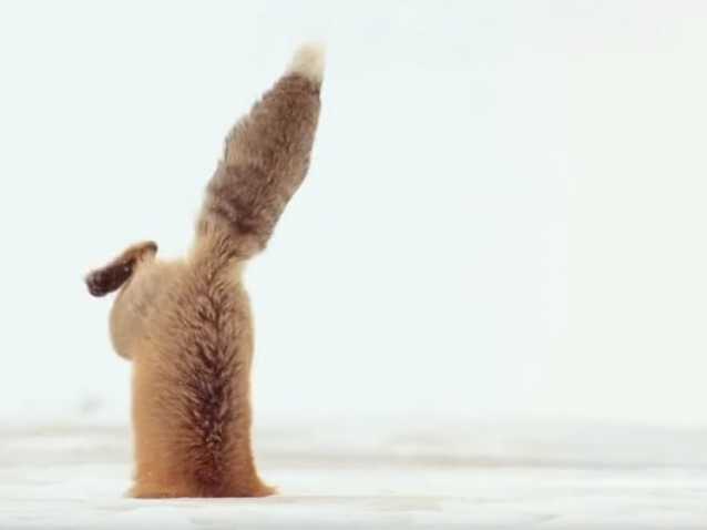 En hiver, le campagnol se cache prudemment sous la neige, ce qui le rend bien difficile à chasser pour la plupart des prédateurs. Cependant, le renard roux a développé une technique de chasse bien à lui. Dans un premier temps, son ouïe exceptionnelle lui permet d'entendre sa proie s'activer sous la neige, puis, plutôt que de la faire fuir en creusant, il s'approche doucement et saute pour plonger droit dans la neige et tenter de l'attraper.