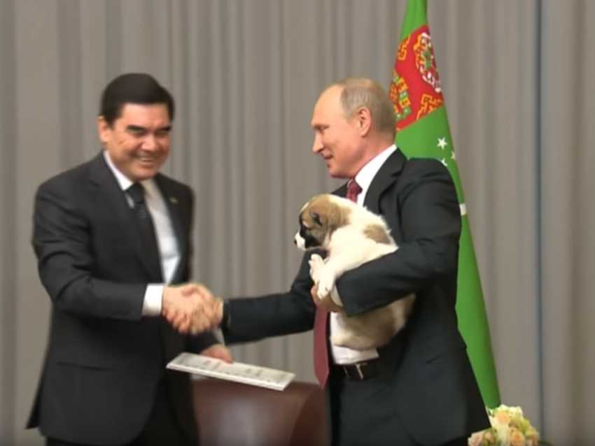 Vous avez envie d'un chien ? Vous rêvez d'un Berger d'Asie Centrale ? Simple : devenez Vladimir Poutine ! Le président du Turkménistan Gurbanguly Berdimuhamedow a offert, en Octobre 2017, un Berger d'Asie Centrale au président Russe, passionné de chiens. Et vous, aimeriez-vous un Berger d'Asie Centrale comme cadeau ?