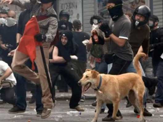 Loukanikos, un chien errant de race inconnue, s'est par hasard retrouvé sur la plupart des photos officielles des manifestations athéniennes contre l'austérité, entre 2009 et 2012. Il est dès lors devenu une célébrité mondiale et un symbole de la protestation grecque, car il était systématiquement du côté des contestataires. Il n'est pas le seul : Kanellos et Thodoris sont eux aussi devenus des icônes pendant les manifestations.