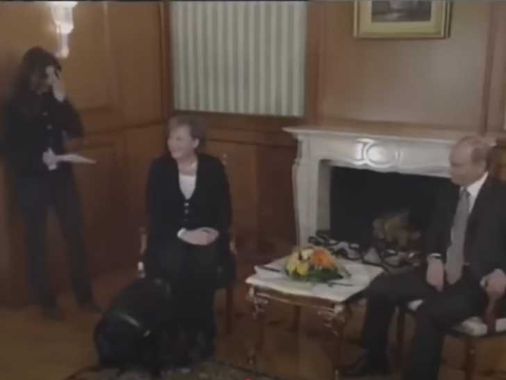 Cette vidéo montre une scène qui fit le tour de la presse à l'échelle internationale en 2007. Il s'agit d'une vidéo d'une rencontre bilatérale entre Angela Merkel, chancelière de l'Allemagne de 2005 à 2021, et Vladimir Poutine, président de la Russie, dans laquelle son chien Konni fait irruption. Selon les commentateurs, Poutine aurait utilisé son animal de race Labrador Retriever pour intimider son interlocutrice, connaissant sa peur des chiens.