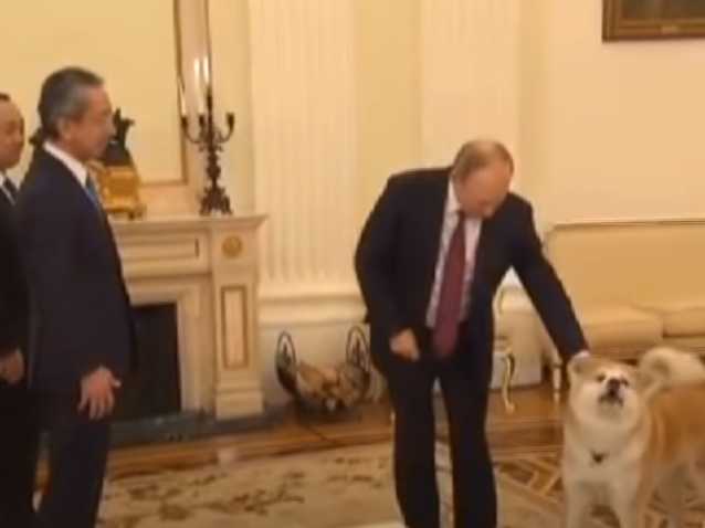 En remerciement de l’aide apportée par la Russie après l’accident de Fukushima, le Japon avait offert au président une chienne Akita Inu nommée Yume (rêve, en japonais). Suite a leur demande, Vladimir Poutine a présenté sa chienne aux journalistes venus l’interviewer. Visiblement stressée par les éclairages violents et les caméras, celle-ci leur a plutôt réservé un accueil glacial. Le président russe a dû la calmer en lui distribuant des friandises à plusieurs reprises et a précisé que Yume avait un fort caractère.