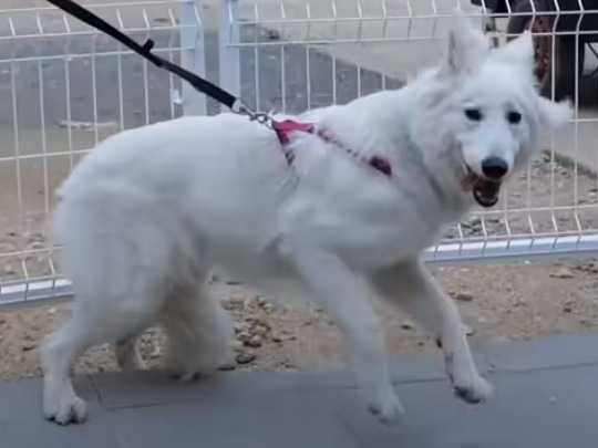 Romy, une magnifique femelle Berger Blanc Suisse de 8 mois, a eu la malchance de naître durant un confinement contre la pandémie de COVID-19. Elle a été insuffisamment exposée à l'environnement extérieur durant ses premiers mois de vie, ce qui a eu pour conséquence d'engendrer chez elle une phobie démesurée des humains.