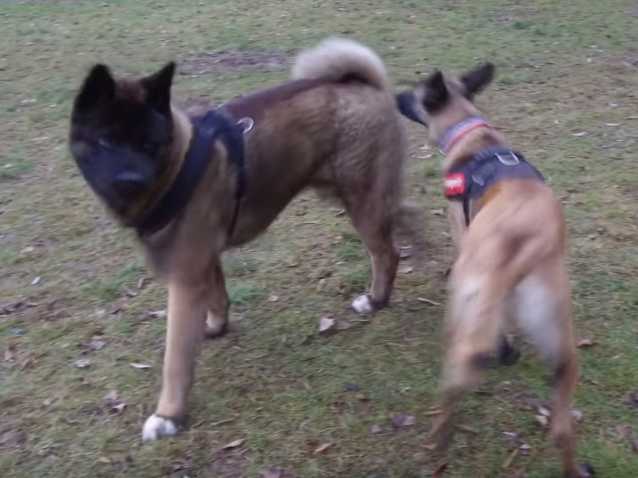 Cet Akita Américain ne supporte pas les autres chiens et est très agressif envers eux. Sa maîtresse, excédée par son comportement imprévisible, tente de résoudre ce problème par une méthode originale : le faire éduquer par un chien thérapeute, ici un Malinois.