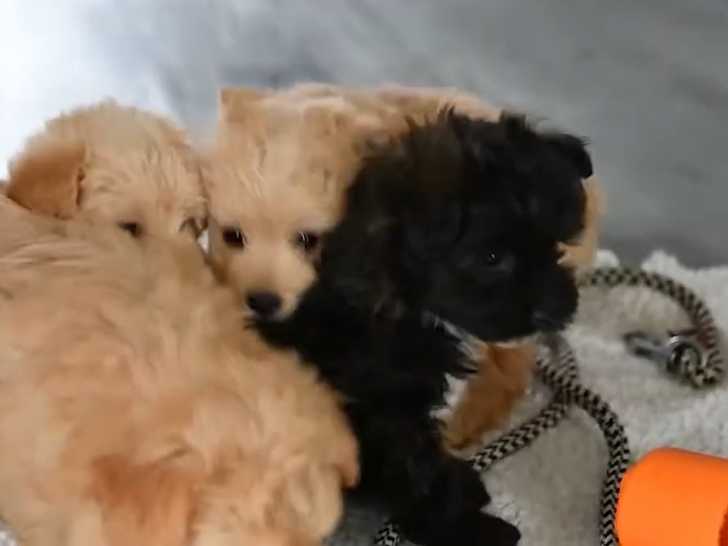 Ces jeunes Pomapoos, issus du croisement entre un Loulou de Poméranie et un Caniche, jouent ensemble avec leurs nouveaux jouets. Ils découvrent leur environnement avec une curiosité qui les rend adorables. Ils vivent pour l'instant dans un refuge et attendent la famille aimante qui pourra prendre soin d'eux. Cette vidéo met en avant un site internet permettant aux familles de trouver le compagnon à quatre pattes qui pourra partager leur vie.