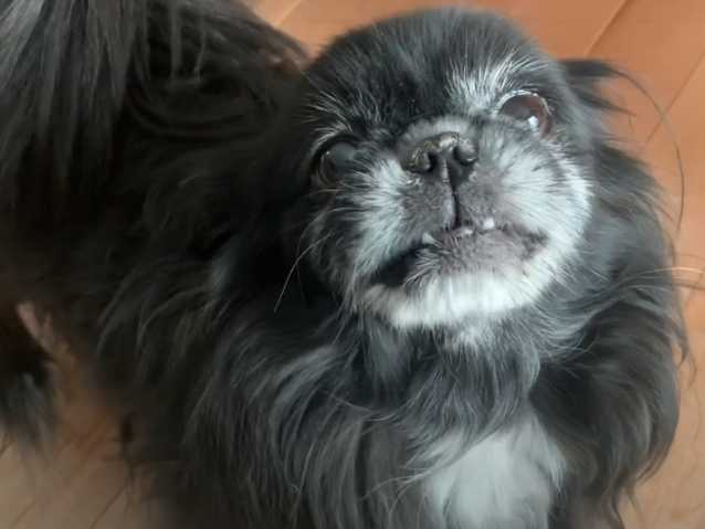 Ici, un Pékinois veut absolument que son maître joue avec lui en lui envoyant sa peluche. Cependant, la personne ne semble pas disponible ou n'en a pas envie. Face à l'absence de réaction de son propriétaire, le chien se met à aboyer et à grogner et manifeste sa colère.
