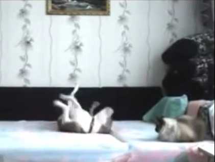 Vous vous êtes toujours demandé ce que pouvait bien faire vos animaux en votre absence ? Cette vidéo vous donnera peut-être une réponse : la personne a filmé son lit en caméra caché et dès son départ le chien s'en donne à coeur joie, se roulant sur le lit sous le regard (presque) résigné du chat de la maison. Une vidéo amusante mais pas très rassurante !