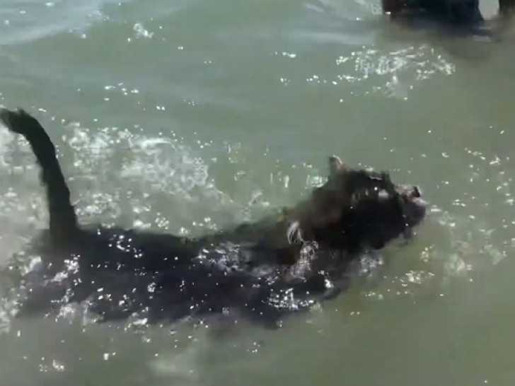 Coco est un Chinese Boston-Tzu au pelage noir, issu du croisement entre un Boston Terrier et un Shih Tzu. Ses maîtres l'ont emmené à la plage. Il nage avec eux dans la mer avant de rejoindre le bord de l'eau. Il semble ne pas avoir peur et s'amuser, et se déplace sans difficulté dans l'eau.