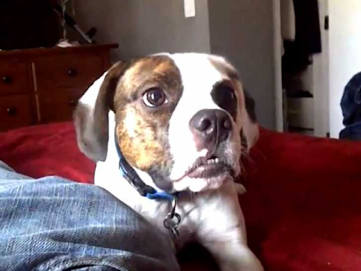 Ce Frengle passe un moment complice avec son maître. Plein d'énergie, il se montre joyeux et joueur, aboyant pour attirer l'attention de celui-ci. Une fois son objectif atteint, il fait mine de l'attaquer en courant dans tous les sens, et en mordillant ses mains. Le Frengle est issu du croisement entre le Bouledogue Français et le Beagle.