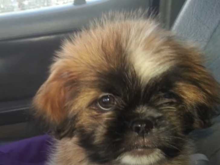 Ce compagnon est un Shinese, fruit du croisement entre un Shih Tzu et un Pékinois. Il est très amusant à observer, surtout lorsqu'il se roule sur le sol en se frottant contre la moquette, sûrement pour se gratter le dos. Sa maîtresse le trouve très divertissant, car il est joueur et aime faire quelques bêtises.
