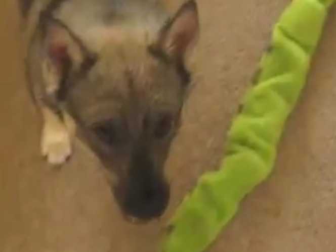 Ce vallhund suédois, ou spitz des Wisigoths, devient littéralement fou alors qu'il rentre de balade... Simplement parce qu'il est mouillé ! Se frottant au sol pour montrer qu'il a besoin d'être essuyé, il se défoule aussi sur un jouet en peluche. On se rend bien compte en tout cas que cette race de chien de berger a une grande quantité d'énergie à dépenser !