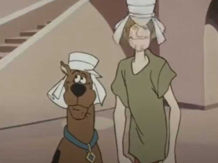 Cette vidéo est un extrait d'un épisode du dessin animé Scooby-Doo, intitulé Le Magicien du Désert. Créé en 1969, son personnage éponyme est un Dogue Allemand peureux et maladroit accompagnant quatre adolescents dans des enquêtes paranormales. Conçu comme un anti-héros comique, Scooby-Doo devient une icône de cette série animée. Son succès engendre plusieurs suites, des films d’animation et des adaptations cinématographiques en images de synthèse.